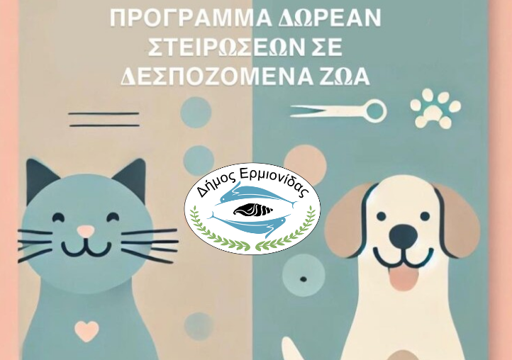 Σας ενημερώνουμε ότι ο Δήμος Ερμιονίδας παρέχει δωρεάν στειρώσεις, σημάνσεις, καταγραφές και εμβολιασμούς σε ιδιοκτήτες ζώων συντροφιάς που ανήκουν σε ευάλωτες και ευπαθής ομάδες, καθώς και σε ιδιοκτήτες σκύλων που χρησιμοποιούνται αποκλειστικά για την φύλαξη ποιμνίων (ποιμενικά).