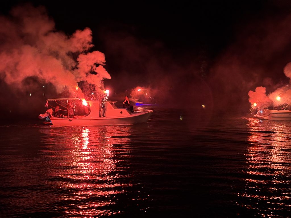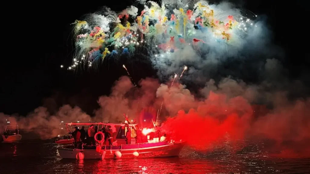 Αντίστοιχα, στο Λιμάνι της Ερμιόνης, πλήθος κόσμου παρακολούθησε το εντυπωσιακό «Κάψιμο του Ιούδα», συνοδευόμενο από μουσικοχορευτική παράσταση από τη Χορευτική Ομάδα Ερμιόνης και το πλούσιο θέαμα των πυροτεχνημάτων που φώτισε τον ουρανό και τη θάλασσα.