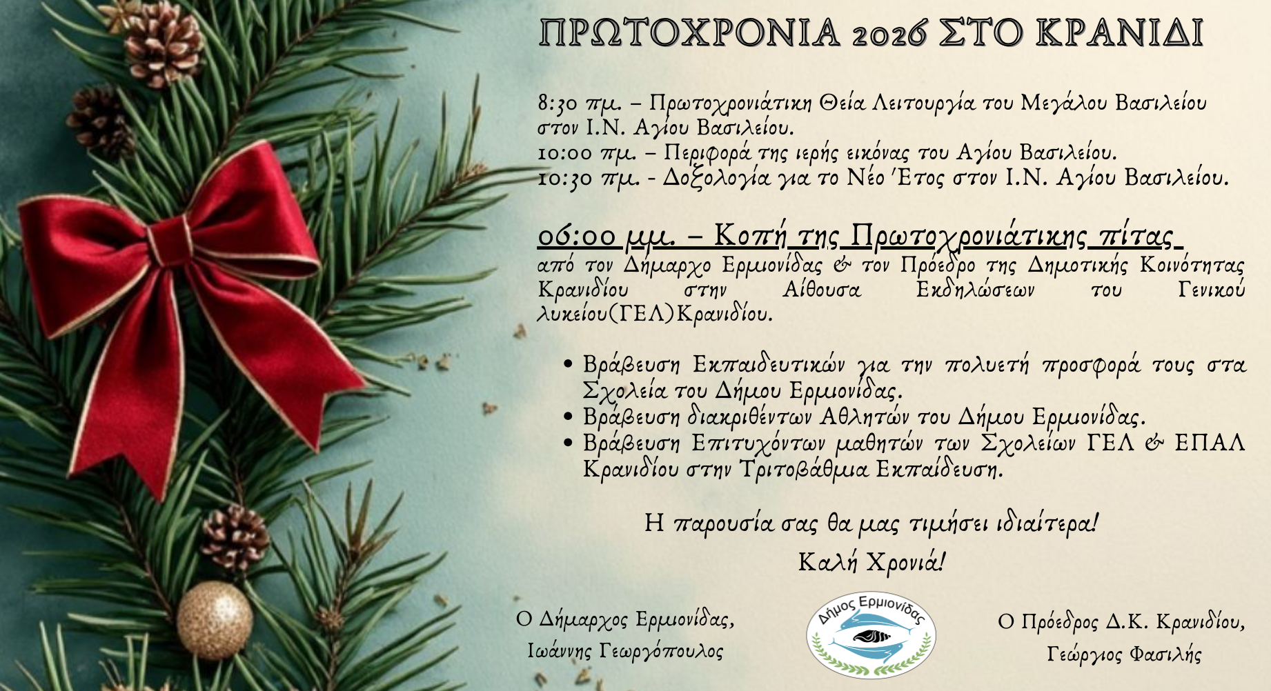 Πρόσκληση – ΠΡΩΤΟΧΡΟΝΙΑ 2026 ΣΤΟ ΚΡΑΝΙΔΙ